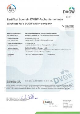 Zertifikat als Rohrleitungsbauunternehmen nach GW301
