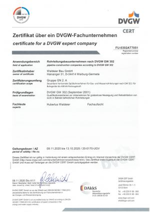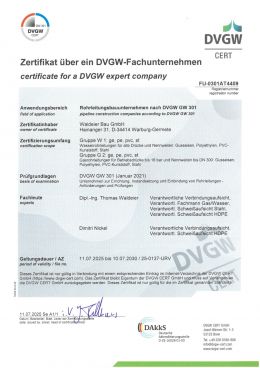 Zertifikat als Rohrleitungsbauunternehmen nach GW301